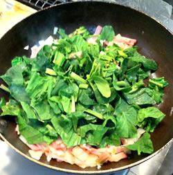 ベーコンの塩気があるので塩はしなくても大丈夫です。